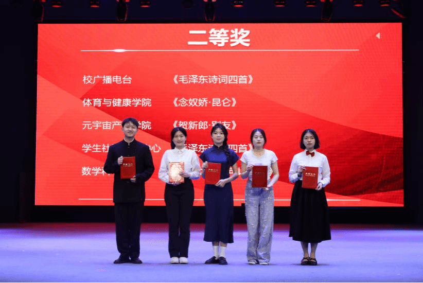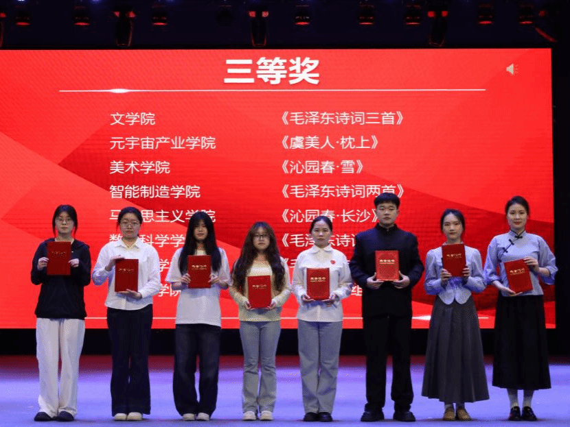 本次展演围绕“破晓曙光”“烽火征途”“不朽丰碑”三个篇章展开,巧妙融合朗诵、音乐等多种艺术形式,生动再现了毛泽东诗词中的革命豪情与家国理想,带领师生穿越历史长河,重温峥嵘岁月。
