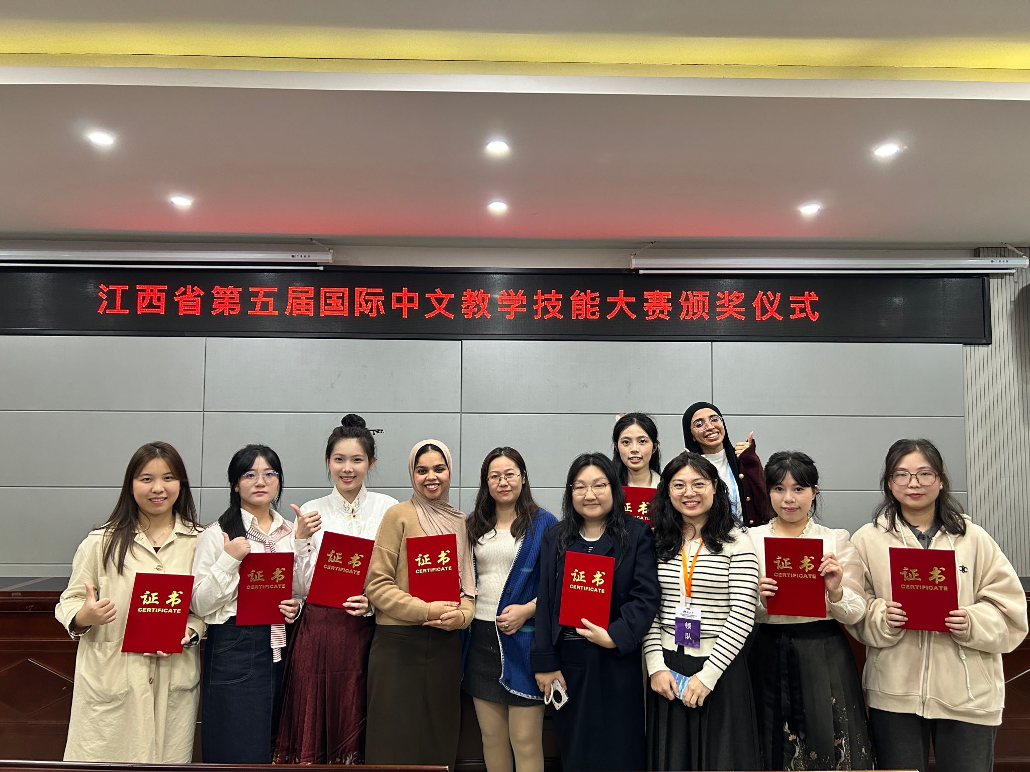 10月25日下午,江西省第五届国际中文教学技能大赛决赛在南昌大学前湖校区举行。WilliamHill威廉希尔组建8人团队参赛,由国际中文教育专硕点导师、汉语国际教育本科专业负责人万书言博士带队,与全省其他高校选手激烈竞技,获得优异成绩。国际中文教育专硕生张玉霞、方珂、章虹,汉语国际教育本科生姥天成、刘怡君、周心雅等6位同学荣获省级一等奖。我院国际中文教育专硕点第一位留学生,来自摩洛哥的25级研究生艾莎,荣获省级二等奖。国际中文教育硕士点负责人林芝雅教授及青年教师黄婷婷博士应邀为赛场评委。