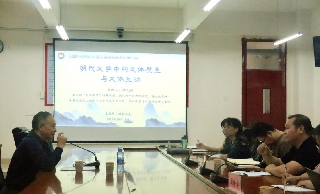 在本次讲座中,陈文新教授重点剖析了“文体壁垒”现象。他以明代文学“文各有体”的观念为引,指出不同文体之间存在明确的规范与界限,并通过对比诗与文、古诗与律诗、律诗与绝句的差异,生动阐释了各类文体的独特标准与审美追求。此外,陈教授以“古文的小说化”为例,具体展示了不同文体之间的相互融合与渗透,为在场师生理解文学流变提供了新的视角。