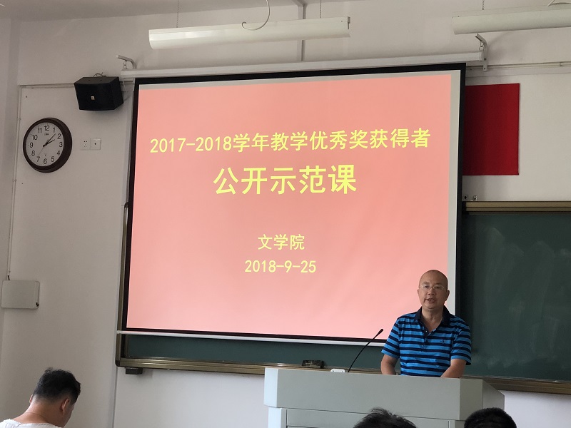 9月25日下午2点,WilliamHill威廉希尔在文科楼1304教室举行了2017-2018学年教学优秀奖获得者公开示范课。本次公开示范课由院长谭杰主持,授课教师为王文泰、杨群、章颖、吴国如,全体老师参加。