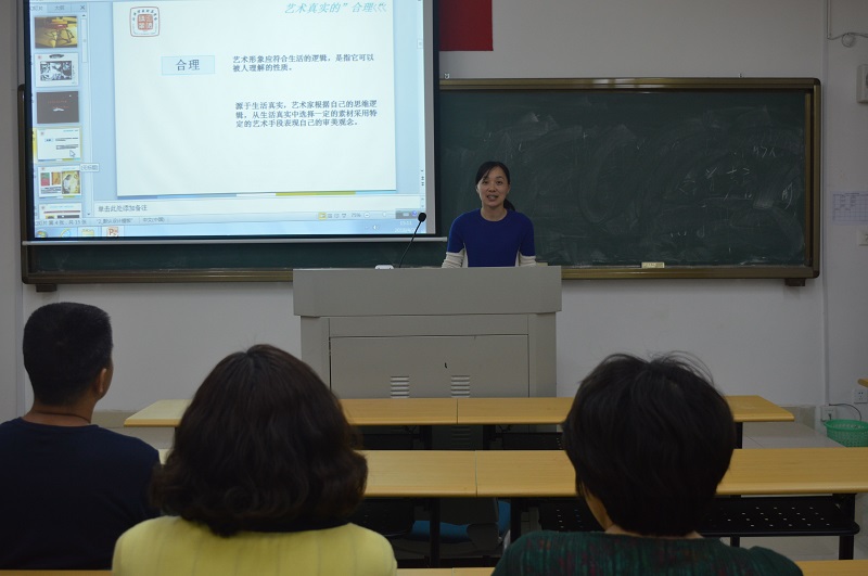 杨群老师讲授的是文学与影视的关系。杨老师从实际出发,结合视频,充分发挥多媒体形象直观的特点,深入浅出,全面讲解了这两者的关系,赢得了全场老师的掌声。