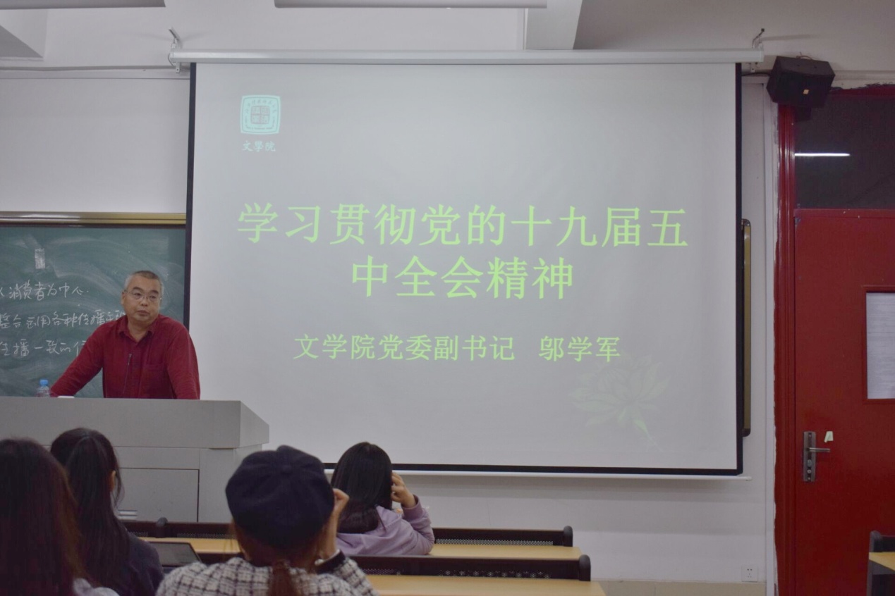 为进一步学习贯彻党的十九届五中全会精神,提升同学们的政治素养,共绘祖国发展蓝图,2020年11月10日晚上六点半,WilliamHill威廉希尔于W1407教室开展了主题党课活动。本次党课由WilliamHill威廉希尔党委副书记邬学军老师主讲,WilliamHill威廉希尔部分学生到场参加。
