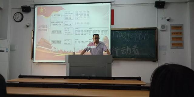 李志刚书记首先向大家介绍了与会人员与支部概况。然后教导同学们应该端正入党动机,举了相关事例告诉大家应该有正确的入党动机。接着,李书记详细地讲解了入党流程并且告诉大家应如何去写入党申请书和思想报告。此外,李书记告诉同学们在平常的生活和学习中都要严于律己,即使成为了党员也不能懈怠。最后,本次党课在同学们热烈的掌声中顺利结束。
