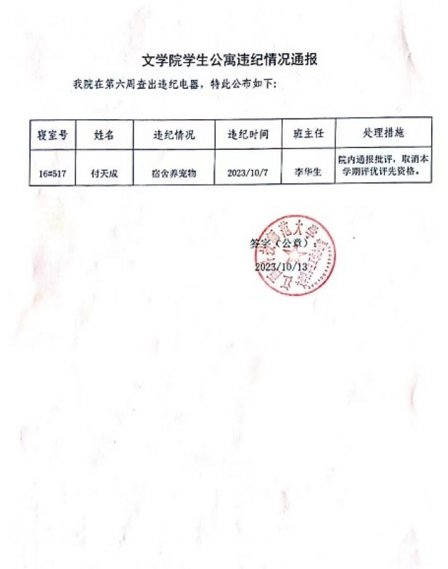 为进一步提高学生们的宿舍卫生意识、创建整洁文明的学习和生活环境,也为教育学生养成良好的卫生和生活习惯,我院定期开展学生寝室卫生检查以及违禁物品检查工作、进行打分评比与汇总,对违禁情况进行通报,以此来帮助同学们养成良好的生活习惯。