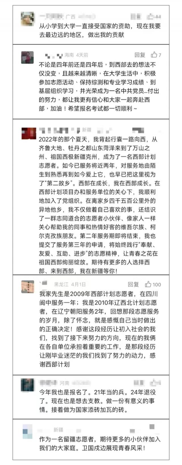 “有一种生活你没有经历过就不知道其中的艰辛有一种艰辛你没有体会过就不知道其中的快乐有一种快乐你没有拥有过就不知道其中的纯粹”这是许多西部计划志愿者的共同感受距离2024年西部计划报名截止仅剩不到3天!期待更多有理想、敢担当、能吃苦、肯奋斗的青年朋友们到西部去到基层去到祖国和人民最需要的地方去让青春在为中国式现代化挺膺担当中焕发绚丽光彩