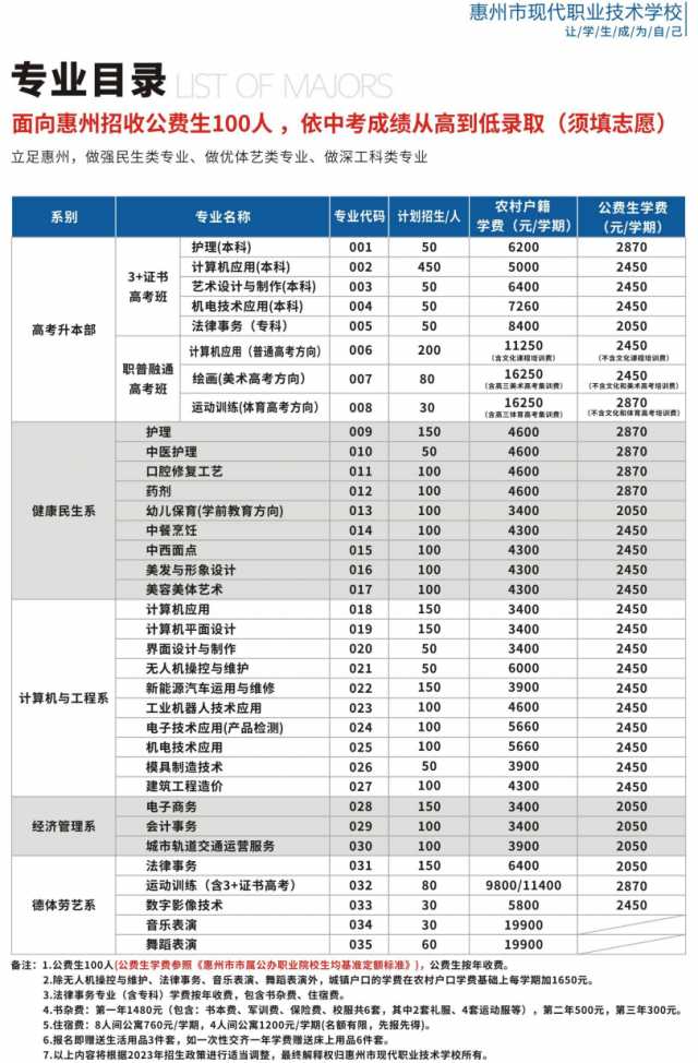 2.第三批次(三二分段):在报考志愿表选择第三批次,第一志愿填写惠州市现代职业技术学校(学校代码8800301)