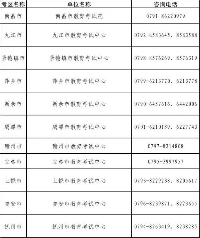 4.政策咨询。考生可登陆教育部中小学教师资格考试网(ntce.neea.edu.cn)、江西教育网(jyt.jiangxi.gov.cn)或江西省教育考试院网(www.jxeea.cn)了解相关考试信息。有关问题可咨询相应的考区。