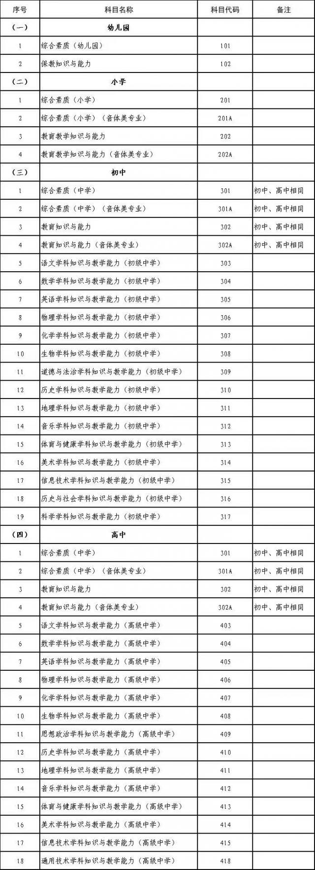 3.初级中学《学科知识与教学能力》科目为:语文、数学、物理、化学、生物、历史、地理、道德与法治、英语、音乐、美术、体育与健康、信息技术、历史与社会、科学等15个学科。