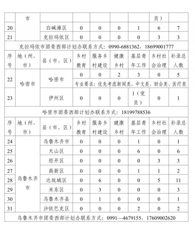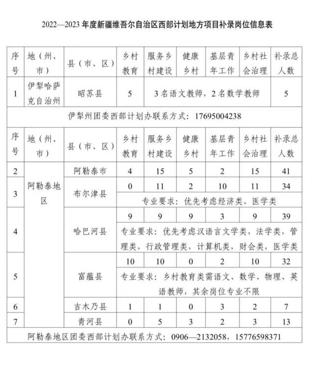 未尽事宜可登陆西部计划官网查询政策(https://xibu.youth.cn/)或向新疆团区委西部计划办电话咨询。