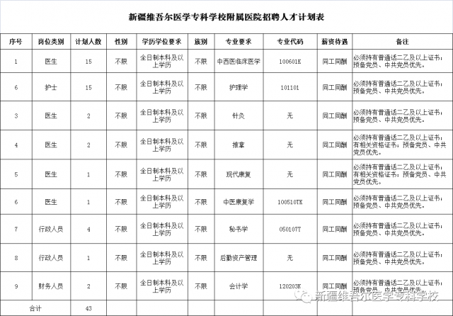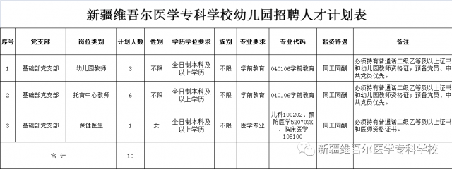 计划招聘人数138人,学校本部计划招聘85人,其中教师59人(优先博士、硕士),专职辅导员14人(中共党员,优先硕士),教辅人员12人(其中,心理咨询室1人、图书馆5人、编辑部3人、后勤基建科1人、财务人员1人、统战部1人),学校岗位详见附件1(体制外);学校附属医院计划招聘43人,岗位详见附件2(体制外);学校附属幼儿园计划招聘10人,岗位详见附件3(体制外)。