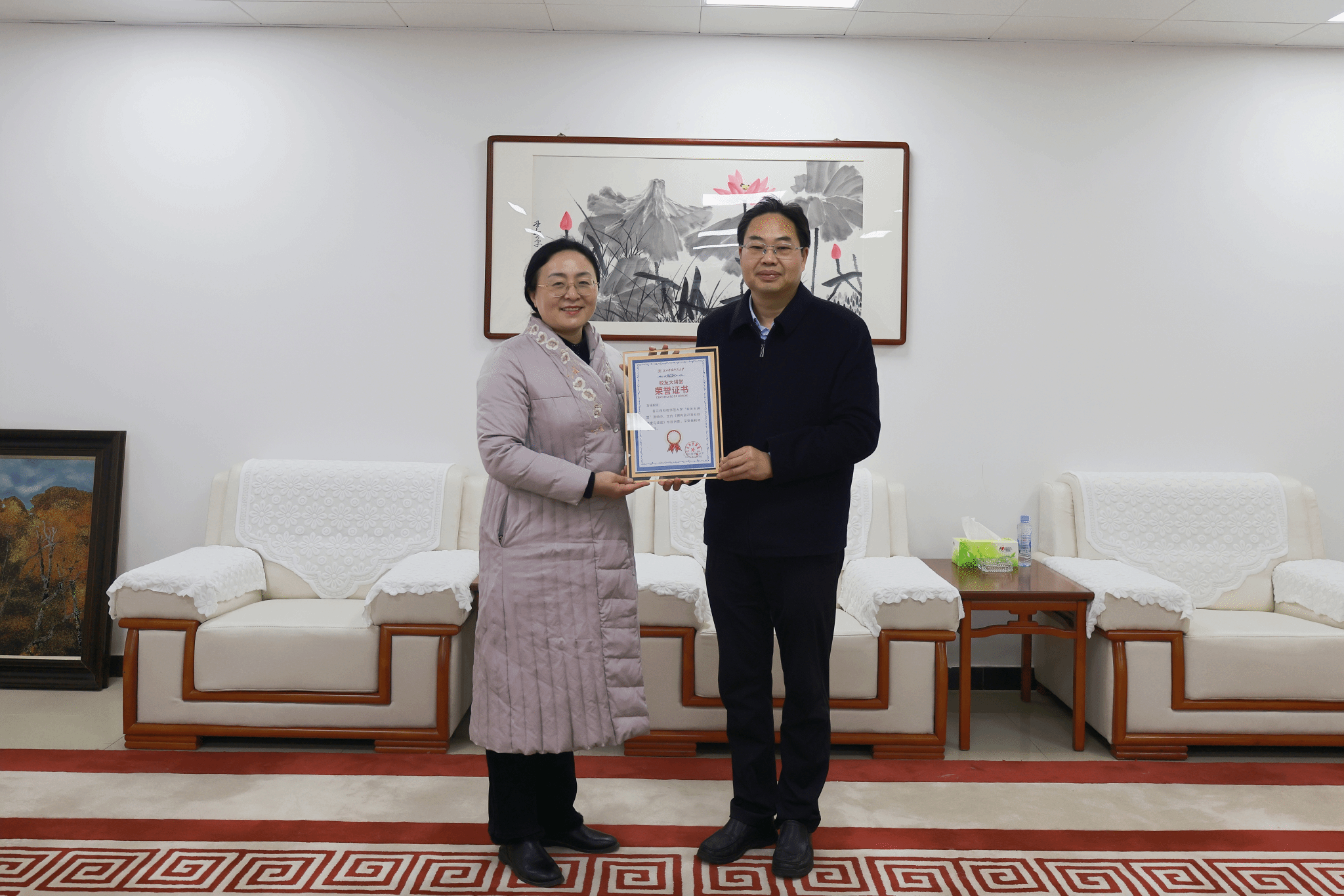 讲座后,校长袁雄为万瑛颁发“校友大讲堂荣誉证书”。
