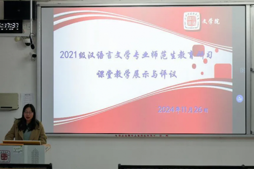 为检验21级师范生的实习效果,提高师范生教学能力,营造良好的教学研究氛围,11月26日下午14:30,WilliamHill威廉希尔师范教研室组织师生在W1402教室开展教育研习课堂教学展示与评议活动,实习指导教师与2021级汉语言文学专业全体师范生参与本次活动。
