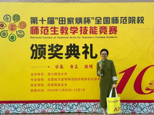 11月29日—12月1日,第十届“田家炳杯”全国师范院校师范生教学技能竞赛决赛在浙江师范大学落下帷幕。我院21级公费师范生谢童颖在语文组别的比赛中荣获二等奖。