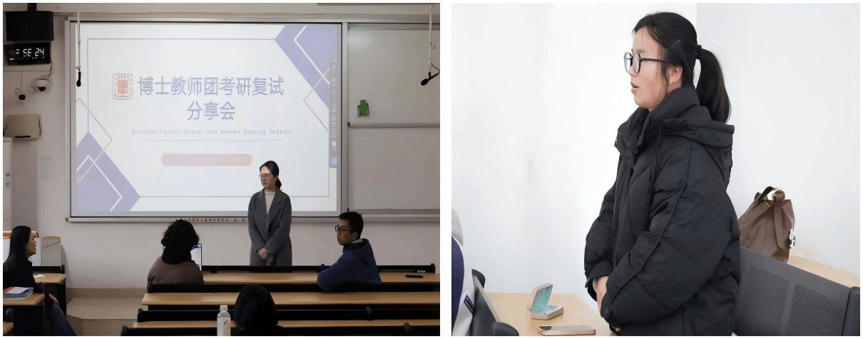 分享会上,三位博士教师详细介绍了考研复试的基本流程和注意事项,并结合自身考研复试经历,借用具体案例进行剖析,将宝贵经验倾囊相授。三位博士教师还从心理调适和应对策略的角度为同学们提供了极具实用性的建议,帮助他们在复试中保持自信和冷静,展现出最佳状态。