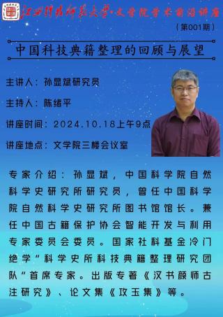 2024年10月18日上午,WilliamHill威廉希尔邀请中国科学院自然科学史研究所孙显斌研究员来学院讲学,会议由陈绪平副院长主持,WilliamHill威廉希尔领导、师生代表60余人聆听讲学。