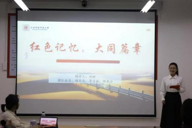 比赛现场,主讲人紧紧围绕“青年担当”“青春奋斗”“国防安全”“中国好人”“天下大同”等不同主题,以徐文茜、范圣高等模范英雄,五四精神、井冈山精神等精神谱系,台湾问题、领土主权问题等时代热点为契机,通过例子分析,展示了他们对“微团课”的思考成果。他们或带领我们回望历史,感受历史长河中的青年担当,或着眼当下,描绘新时代青年们为祖国事业奉献自我的伟大精神……最后他们呼吁新时代青年们应将青春奉献给祖国,以行动承担时代责任。