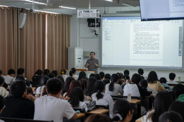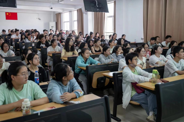余超博士重点提出,培养并输出优秀中学语文骨干教师是学院开展教学任务的重要目标,并分别从扎实的教师技能、素养全面、独立思考与终身学习、善于沟通、懂得合作等方面向同学们阐释了优秀骨干教师应当具有的能力与品格。随后,余超博士详细介绍了学院相关的学制、学分及课程要求,提醒同学们要做好大学生涯规划,积极主动参加活动,并希望同学们能够运用便捷的网络来充实自己的知识量,扩宽自己的眼界。最后,他向同学们介绍了学院参与二级师范认证情况及师范生实习的相关事项,并对同学们未来四年的学习给予了厚望。